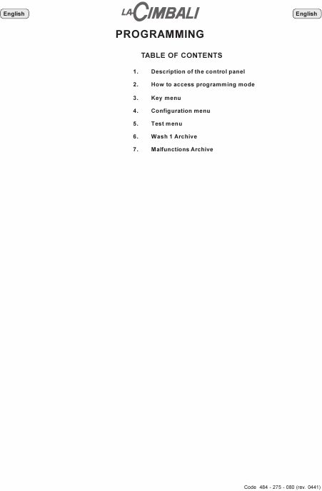 LA CIMBALI M3 Superbar 2 (Programmation) Manual de instalación Inglés