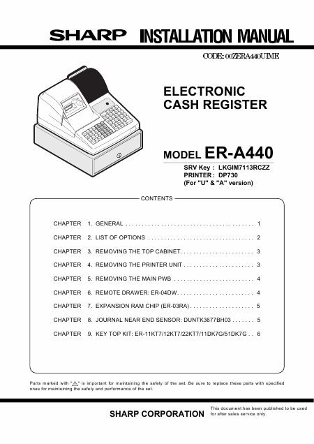 Descargar SHARP ER-A440 Manual de instalación Inglés (9 Páginas) 12.90 EUR