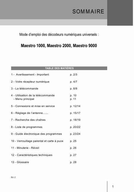 MAESTRO 1000 / 2000 / 9000 Anleitung Französisch