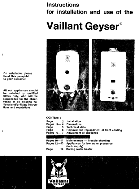 Baixar VAILLANT MAG 125/1 Geyser Instruções Inglês (14 Pages) 15.90 EUR