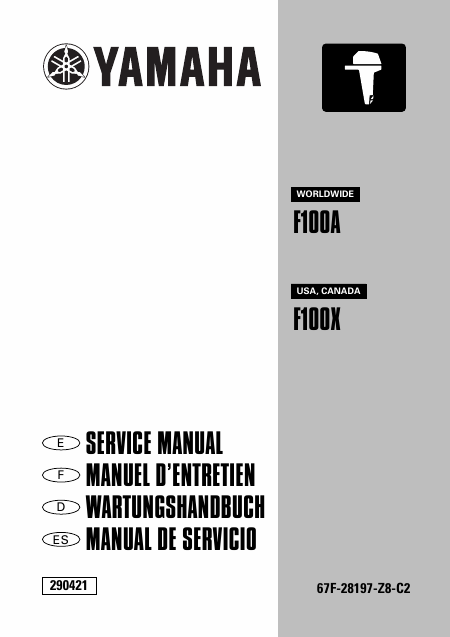Telecharger YAMAHA F100X Manuel de service Allemand (542 Pages) 39.90 EUR