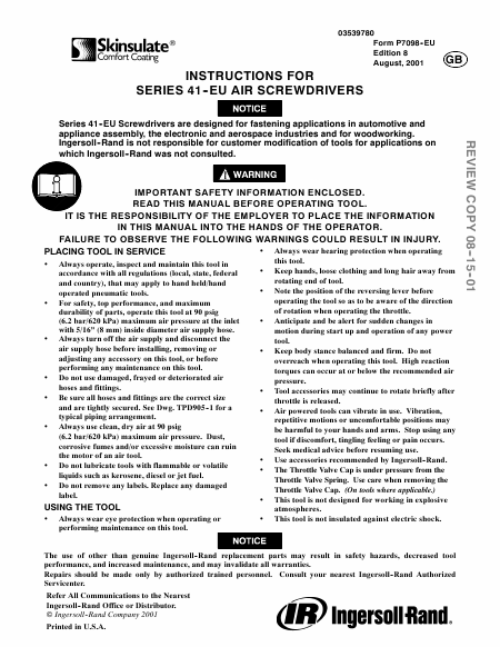 Download INGERSOLL-RAND 41 Anleitung Spanisch (6 Seiten) 12.90 EUR