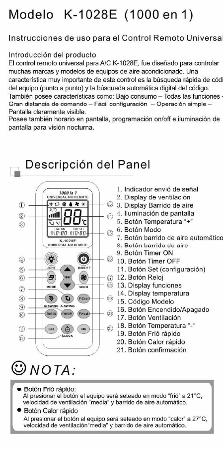 CHUNGHOP K-1028E Mode emploi Espagnol