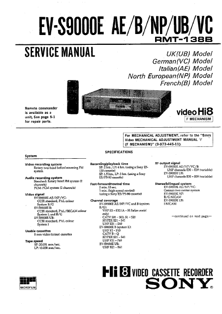 SONY EV-S9000E Manual de taller Inglés