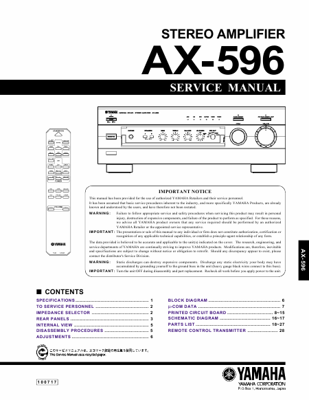 YAMAHA AX-596 Manuel de service Anglais