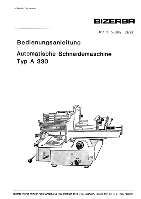 BIZERBA A330 Users Guide German