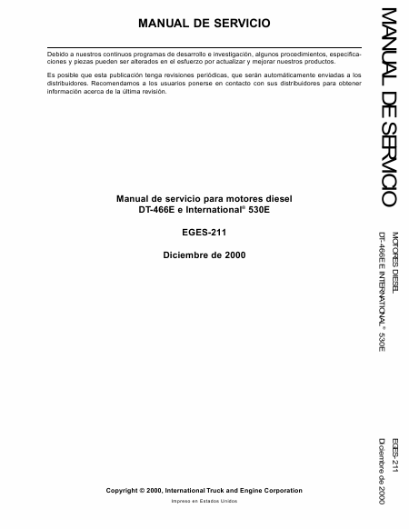NAVISTAR DT-466E Service Manual Spanish