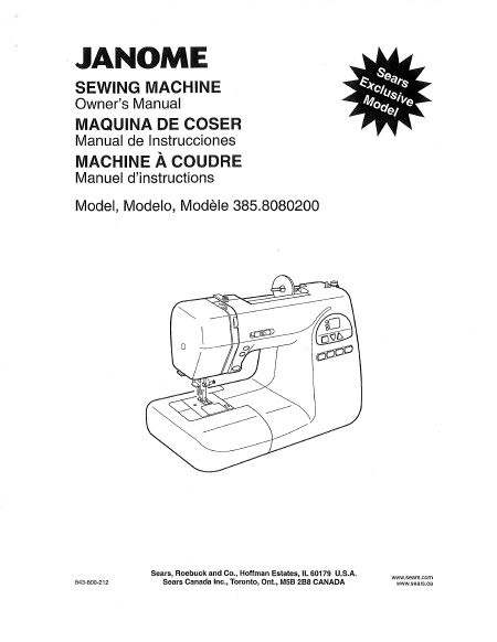 Download JANOME 8080 (385.8080200) Sears Anleitung Französisch (98 Seiten) 39.90 EUR