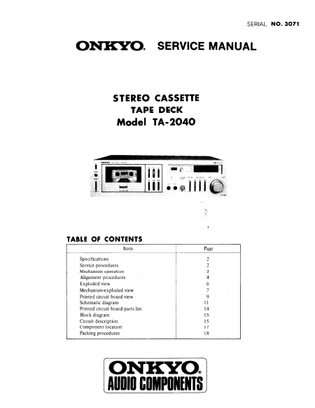 Scaricare ONKYO TA-2040 Manuale di servizio Inglese (13 Pagine) 15.90 EUR