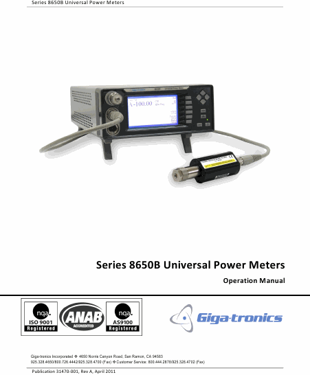 GIGA-TRONICS 8560B Guía del usuario Inglés