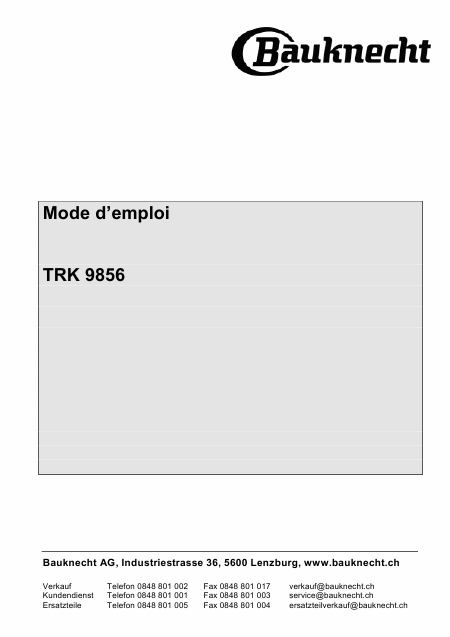 Scaricare BAUKNECHT TRK 9856 Istruzione Francese (13 Pagine) 12.90 EUR