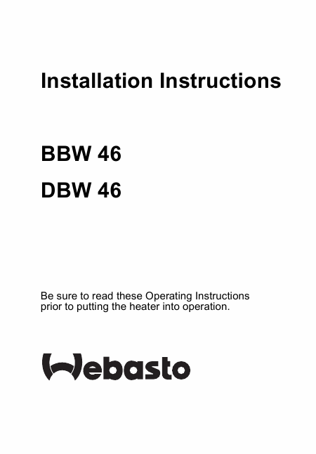 WEBASTO BBW 46 (BBW46) Manual de instalación Inglés