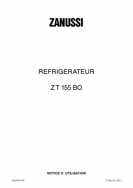 Baixar ZANUSSI ZT 155 BO Instruções Francês (20 Pages) 12.90 EUR