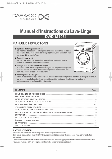 DAEWOO DWD-M1031 (DWDM1031) Mode emploi Français