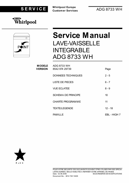 Download WHIRLPOOL ADG 8733 WH (ADG8733) Service Manual French (18 Pages) 39.90 EUR