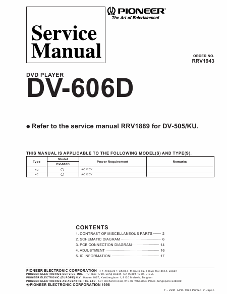 PIONEER DV-606D Manual de serviço Inglês