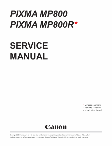 CANON Pixma MP800R Manual de serviço Inglês