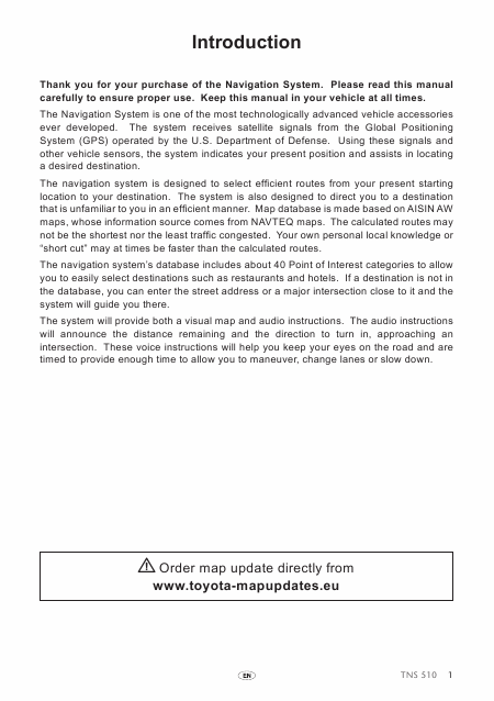 TOYOTA TNS 510 (TNS510) Instruções Inglês