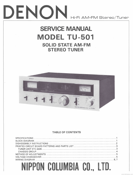 Telecharger DENON TU-501 Manuel de service Anglais (8 Pages) 15.90 EUR