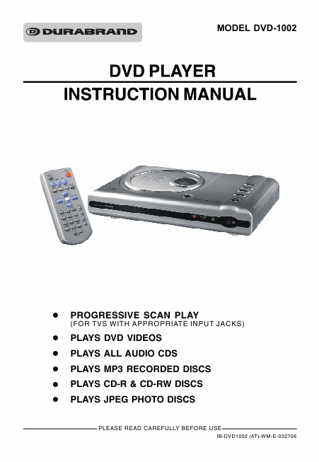 Baixar DURABRAND DVD-1002 Instruções Inglês (27 Pages) 12.90 EUR