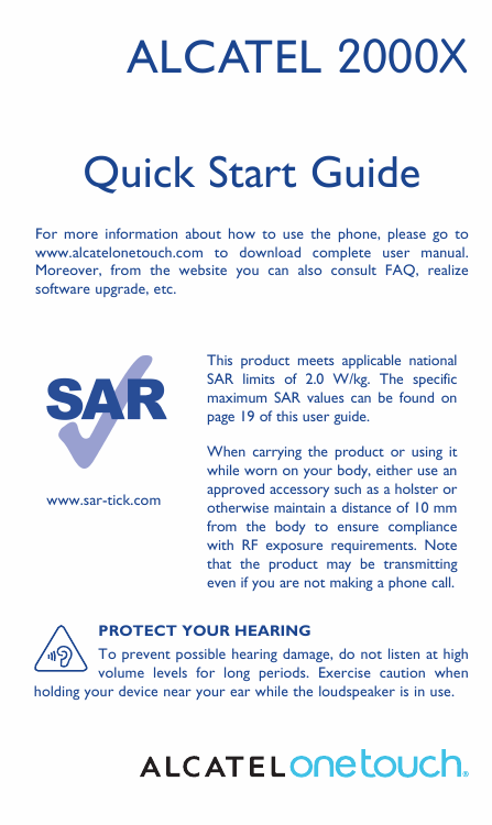 ALCATEL Onetouch 2000 (2000X) Kurzanleitung Englisch