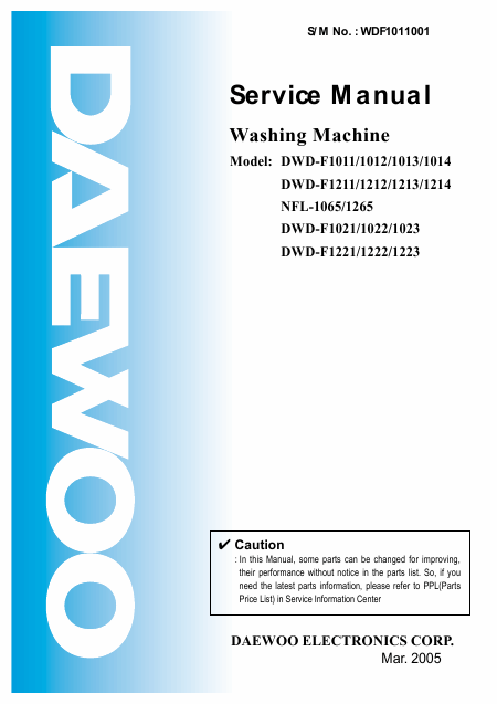 DAEWOO NFL-1265 Serviceanleitung Englisch