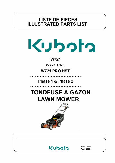 Descargar KUBOTA W721 PRO.HST Lista de piezas de repuesto Inglés (112 Páginas) 15.90 EUR