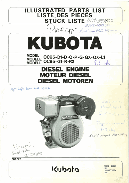 Telecharger KUBOTA OC95 Liste pieces detachees Anglais (42 Pages) 15.90 EUR