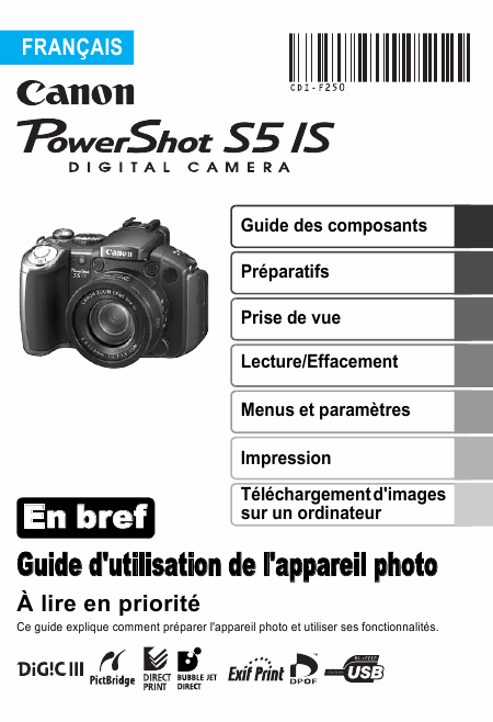 CANON PowerShot S5 IS Quick Start Guide French