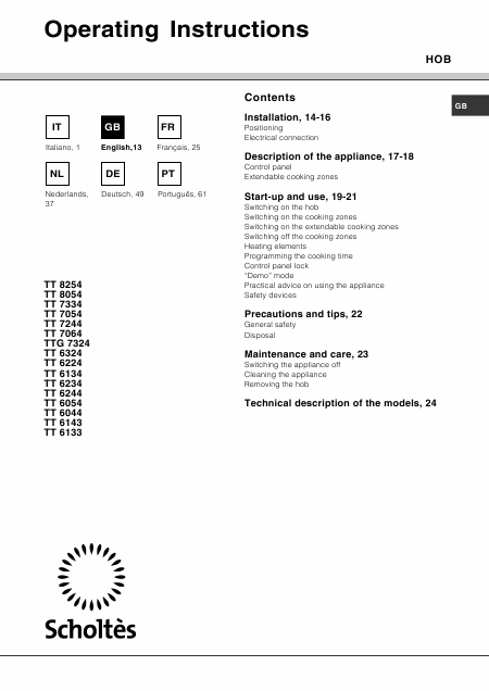 Scaricare SCHOLTES TT 6143 / TT 6133 Istruzione Francese (12 Pagine) 12.90 EUR