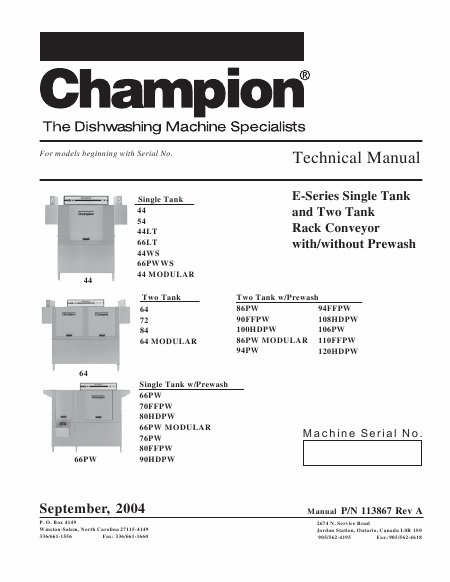 Baixar CHAMPION Two Tank 84 Manual de serviço Inglês (102 Pages) 39.90 EUR