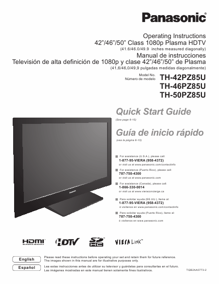 PANASONIC TH-50PZ85U Mode emploi Anglais