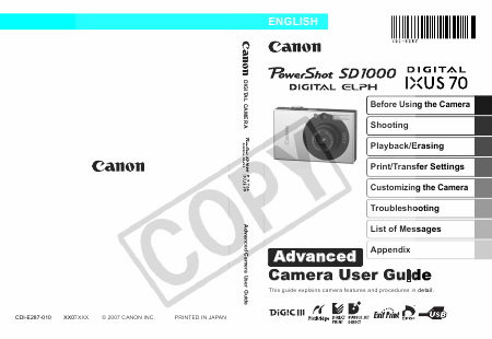 Baixar CANON PowerShot SD1000 Instruções Inglês (0 Pages) 12.90 EUR
