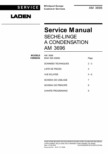 Download LADEN AM 3696 (AM3696) Service Manual French (9 Pages) 15.90 EUR