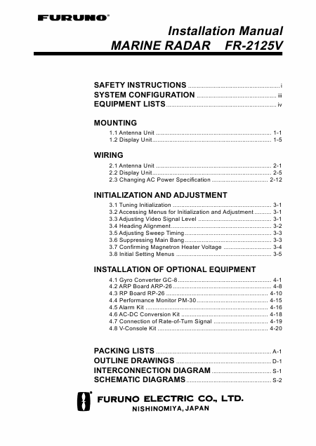 FURUNO FR-2125V (FR2125V) Manuel installation Anglais