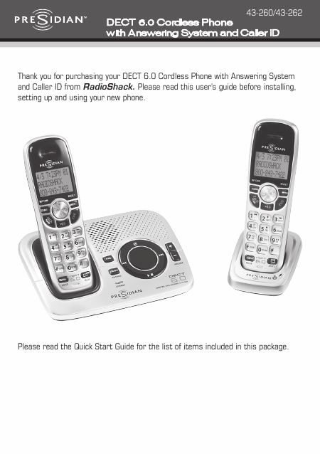 PRESIDIAN 43-262 (43262) Instruções Inglês