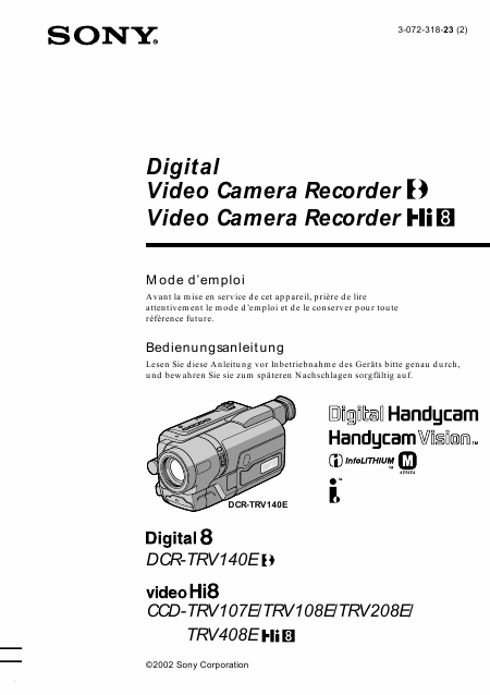 Download SONY CCD-TRV408E Anleitung Französisch (204 Seiten) 12.90 EUR