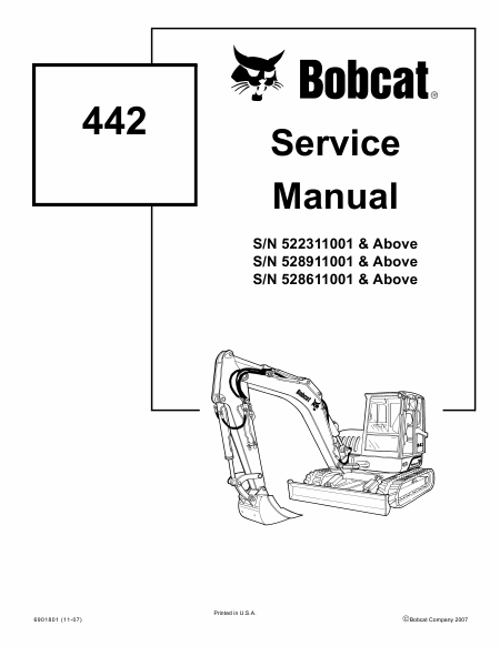 BOBCAT 442 (S/N 5286 11001 & above) Serviceanleitung Englisch