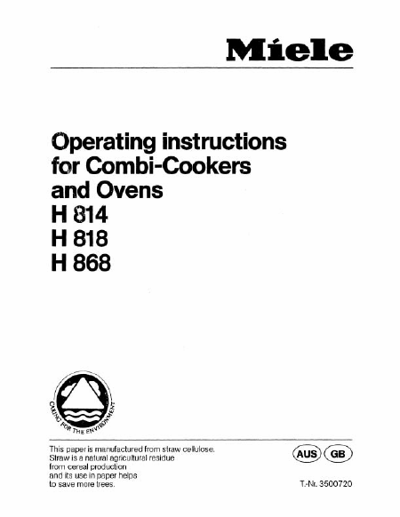 MIELE H 818 (H818) Guía del usuario Inglés
