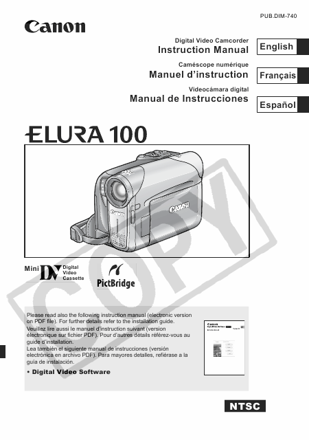 Baixar CANON ELURA 100 (NTSC) Instruções Francês (138 Pages) 15.90 EUR