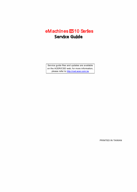 Download ACER eMachines E510 Serviceanleitung Englisch (96 Seiten) 15.90 EUR