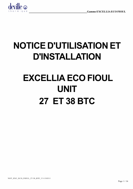 Descargar DEVILLE Excellia Eco Fioul Manual de instalación Francés (16 Páginas) 12.90 EUR