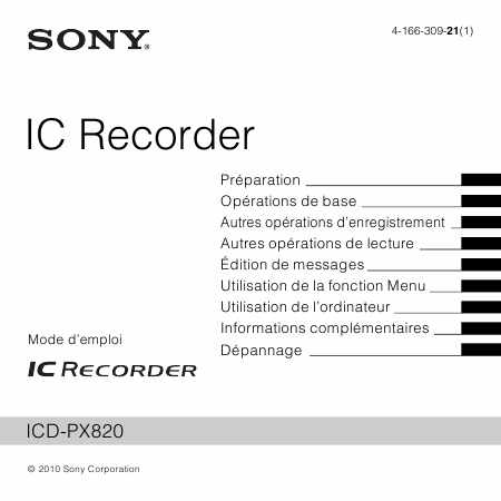 SONY ICD-PX820 Anleitung Französisch