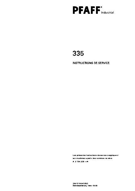 PFAFF 335 Anleitung Französisch