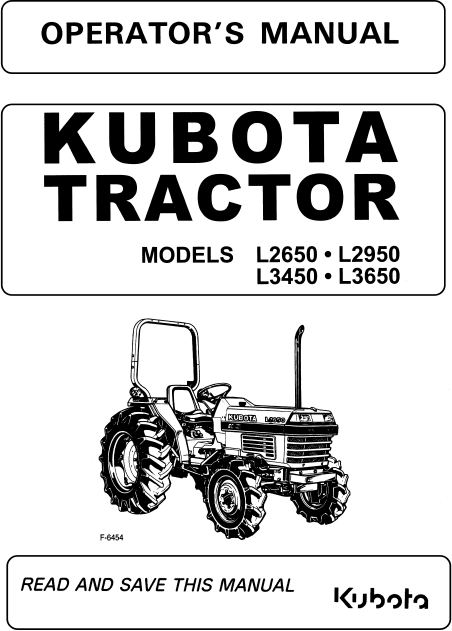 KUBOTA L2950 Guía del usuario Inglés
