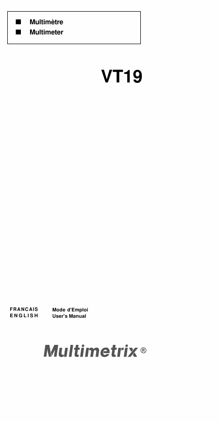 Scaricare MULTIMETRIX VT 19 Istruzione Francese (2 Pagine) 15.90 EUR