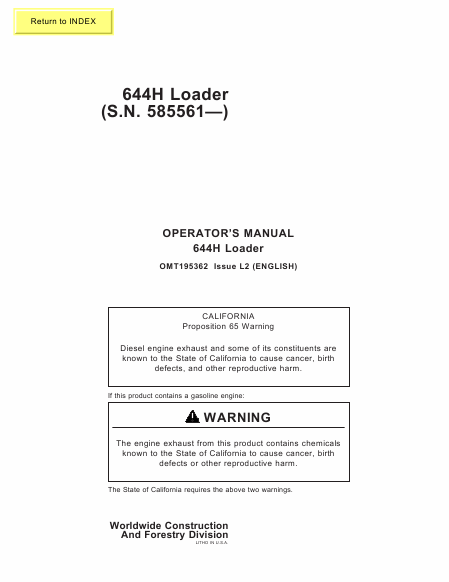 JOHN DEERE 644H Istruzione Inglese