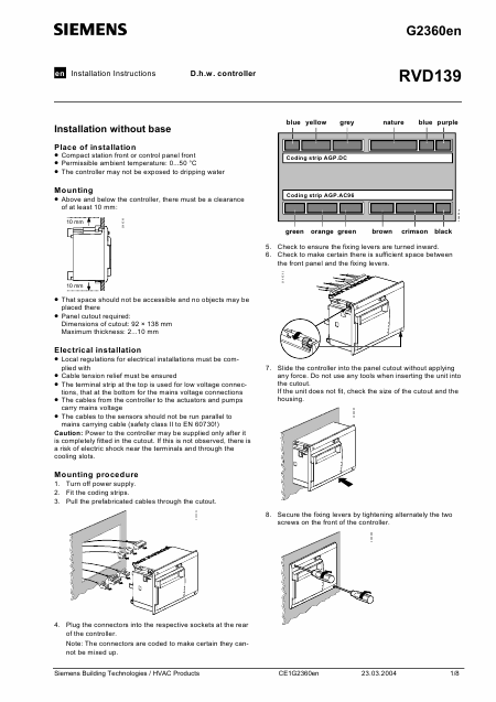 Telecharger SIEMENS RVD139 Manuel installation Anglais (8 Pages) 12.90 EUR