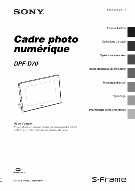 Download SONY DPF-D70 Users Guide French (44 Pages) 12.90 EUR