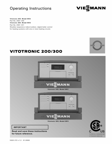 VIESSMANN Vitotronic 200 (KW2) Instruções Inglês